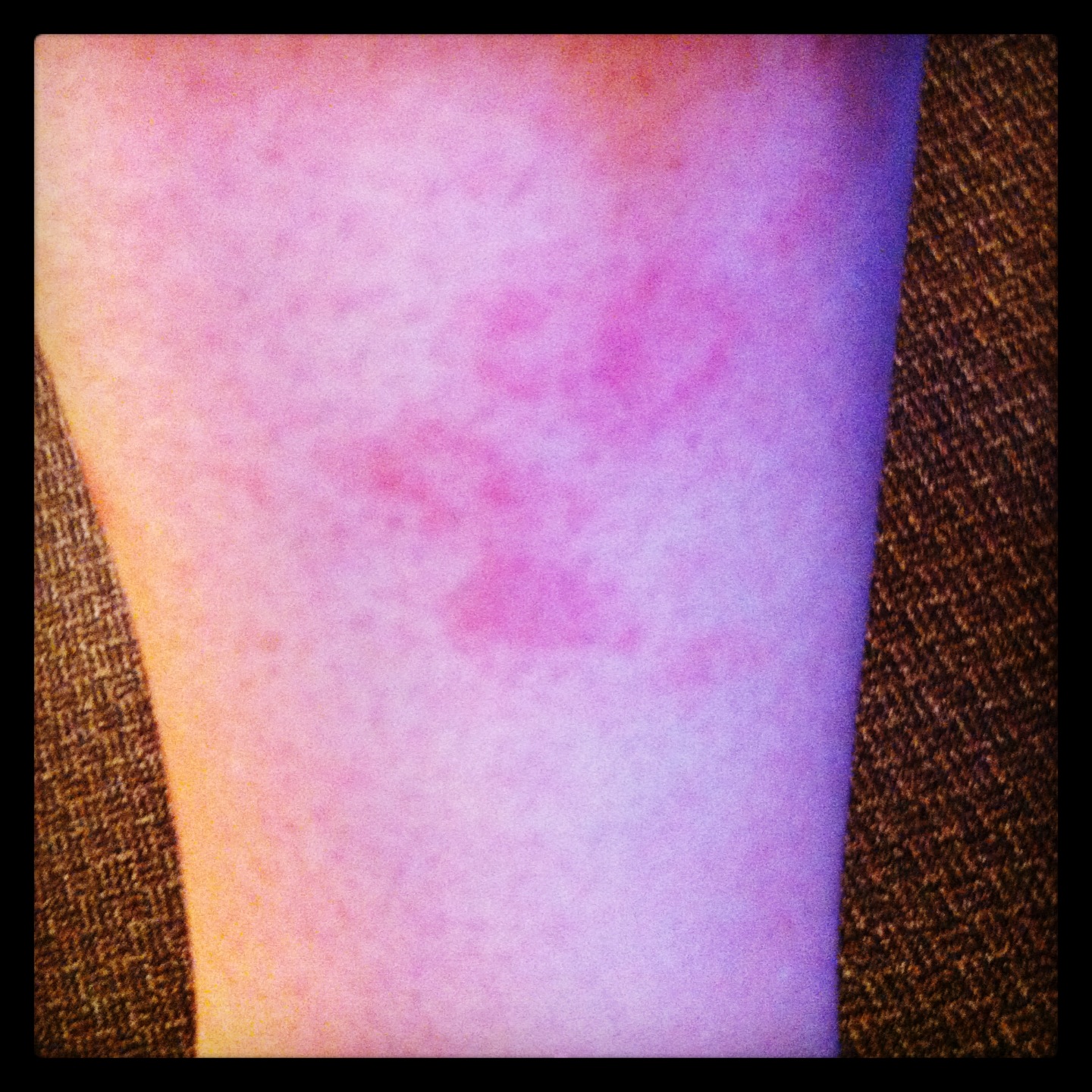 Yes, a hideous and itchy reaction to thin cotton socks!! My feet & legs have been properly spoiled. I know, but sometimes I spend more time at Lee's than I plan on and run out of proper socks. I need to get to pounding out some more socks for me.